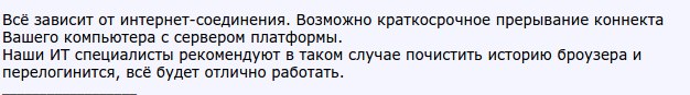 Как выяснилось, проблемы с быстрой торговлей в один клик могут быть связаны с интернет-соединением, глюками в работе самой платформы и перегруженном браузере. Вот что отрекомендовал представитель Optitrade24: