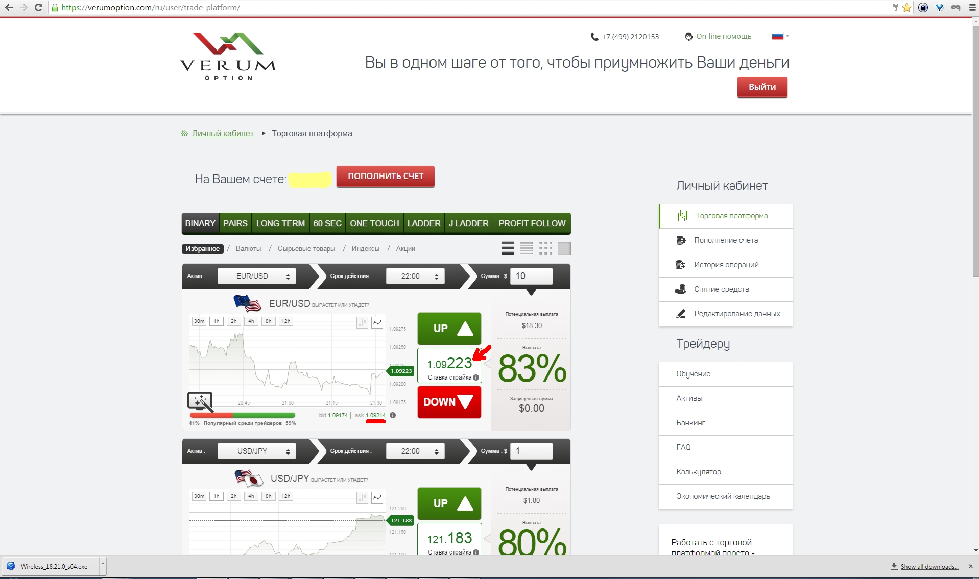 Параллельно позвонила поддержка и поблагодарила за торговлю у них!=)))